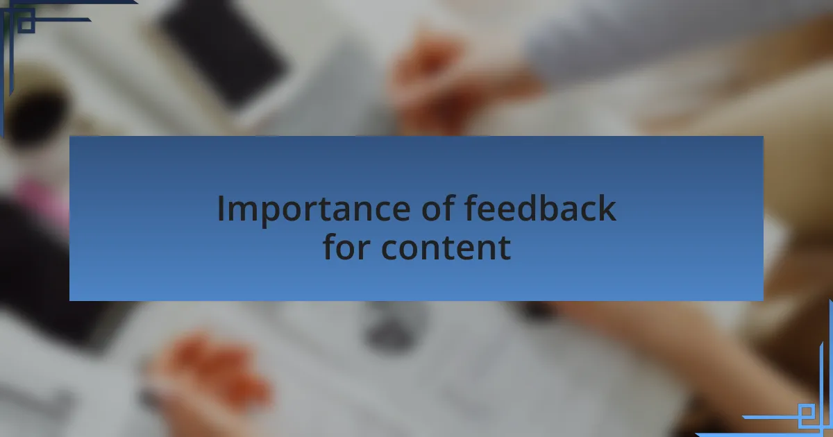 Gathering feedback for content is crucial because it provides a mirror reflecting how our audience perceives our efforts. I distinctly recall a campaign where the initial response was lukewarm; a small group of users pointed out that the messaging felt disconnected. That constructive criticism opened my eyes to the need for a clearer narrative, and I adjusted the content accordingly. Isn’t it fascinating how a few words can drive significant change?